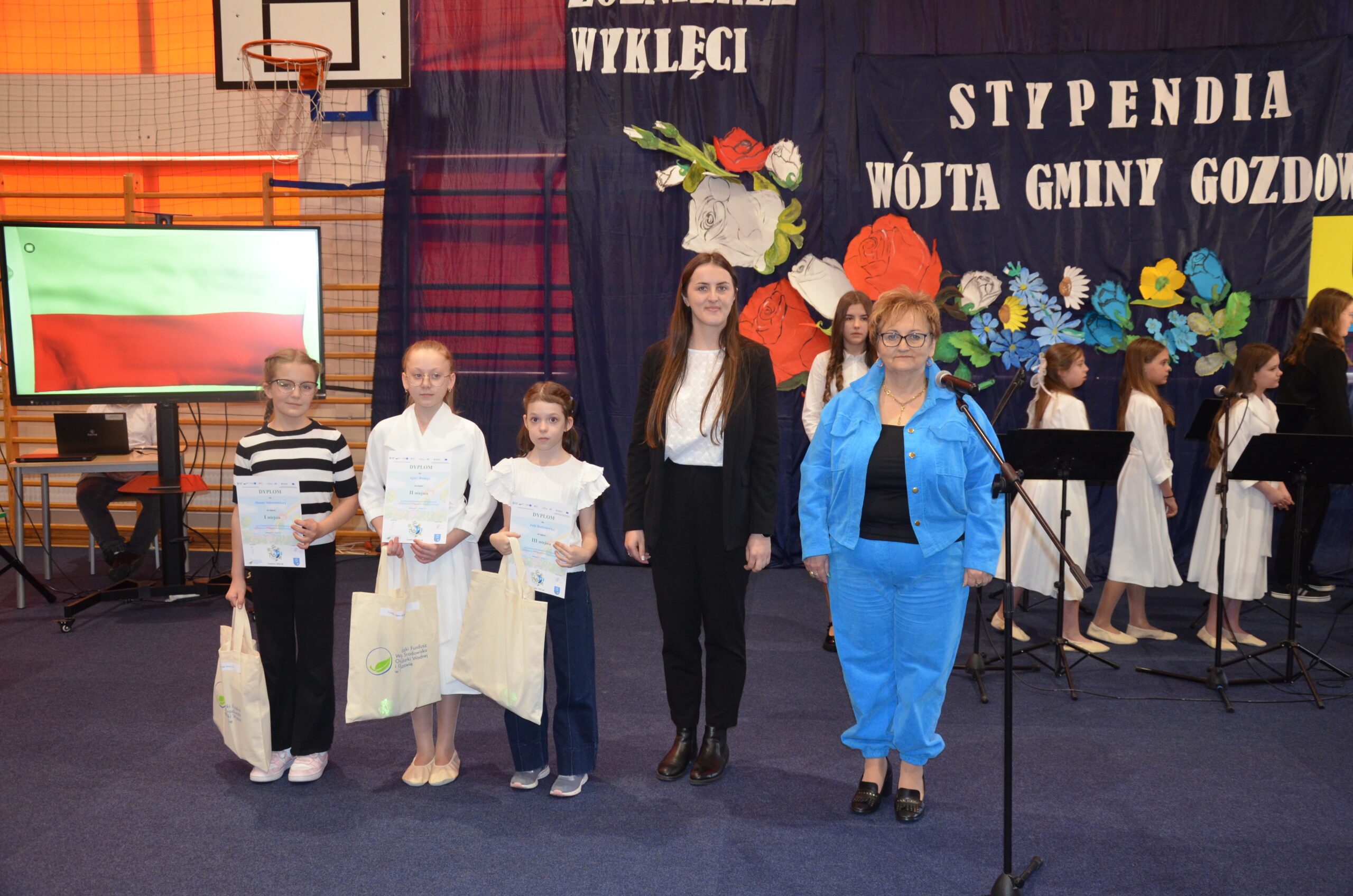 W dniu 03 marca 2026r. w imieniu Wójta Gminy Gozdowo Dariusza Kalkowskiego, Dyrektor Gminnej Biblioteki Publicznej w Gozdowie Honorata Nagórka wraz z pracownikiem Urzędu Gminy w Gozdowie Anetą Kolczyńską, wręczyły nagrody dzieciom i młodzieży ze Szkoły Podstawowej im. Marii Konopnickiej w Gozdowie, które wzięły udział w Gminnym Konkursie Ekologicznym promującym postawy ekologiczne, podnoszącym świadomość ekologiczną z zakresu ochrony powietrza, a także nawiązującym do Programu Czyste Powietrze.